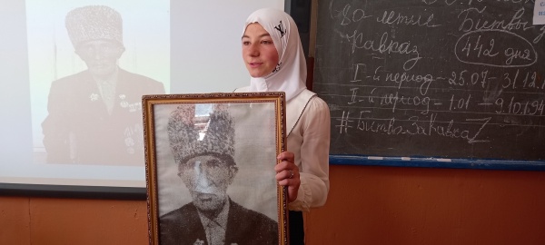 Учительница истории и обществознания Зумзум Магомедова рассказала о битве, которая имела огромное значение для советских войск, о боевых действиях, проведенных в крайне тяжелой обстановке в степной и горно-лесистой местности при значительном перевесе сил в пользу противника.