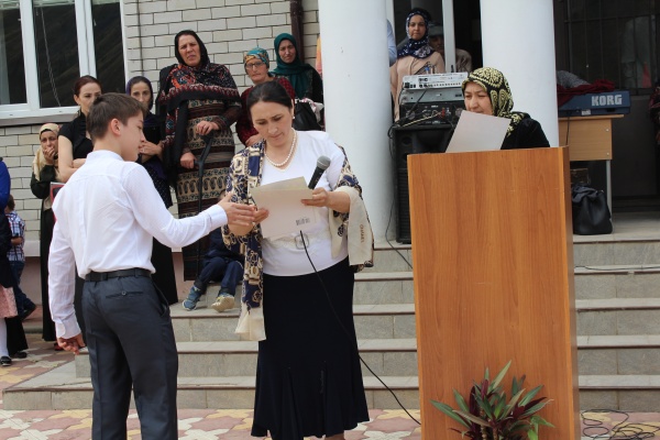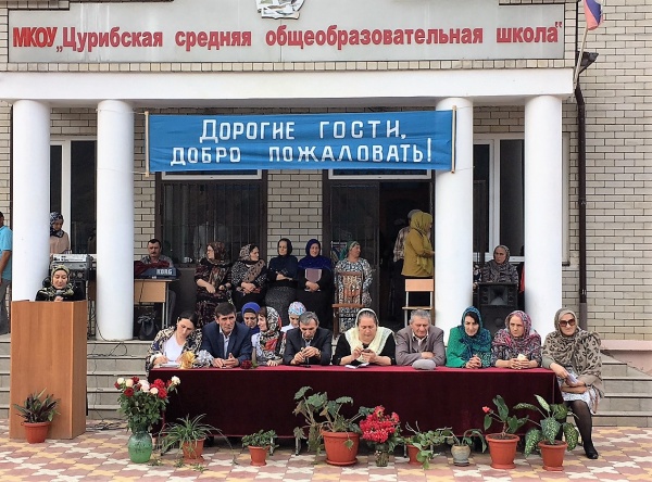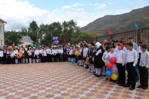 В этот день самая большая школа района в с.Цуриб выглядела особенно торжественно и празднично. К десяти часам нарядные дети, их родители, учителя и приглашенные на праздник Дня знаний собрались в школьном дворе, который был к их приходу заранее красиво украшен плакатами с поздравлениями, разноцветными флагами и цветами.