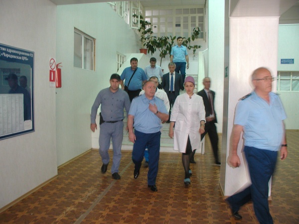 Также в этот день прокурор республики в сопровождении мобильной группы посетил Центральную районную больницу, поликлинику и среднюю школу в селе Цуриб, где провел обход помещений и пообщался с коллективами и посетителями этих учреждений.