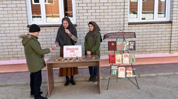 В организациях образования Чародинского района классные руководители, учителя, специалист райадминистрации по делам молодежи и работники центраральной библиотеки ознакомили учащихся с историей блокады Ленинграда, рассказали о трагедии, с которой столкнулись жители Ленинграда, посмотрели документальные фильмы и вместе с детьми раздали кусочки хлеба весом 125 граммов.