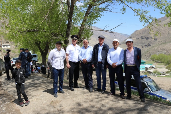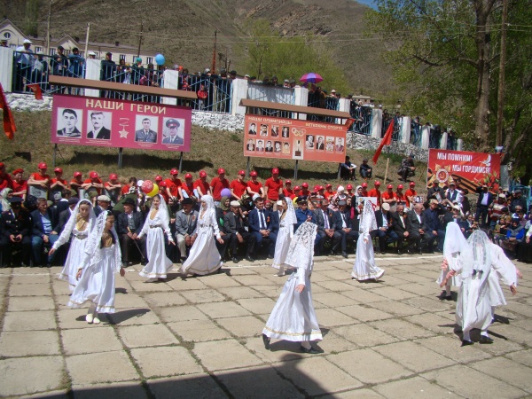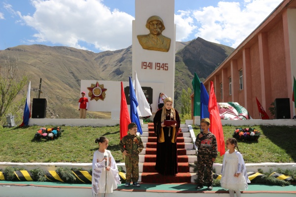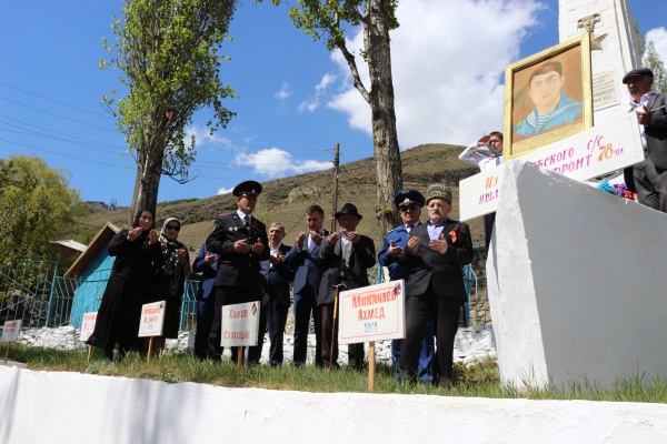 Затем участники праздничных мероприятий направились на территорию возле памятника воинам, погибших на войне, расположенного около Дома культуры Цуриба, где провели основную торжественную часть праздника, которая началась с минуты молчания в память о погибших в годы ВОВ.
