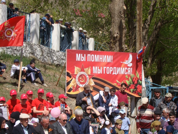 С поздравительной речью и с разными рассказами о войне, о тружениках тыла выступили участники венгерских событий Ахмед Саидов и Абдулкадыр Шамсулгудаев, участник афганских событий Абдулгаджи Ахматилов, член Совета старейшин Мухучи Гарумов, председатель Совета женщин Айшат Халилова. Имам района Узаир Давудов прочитал дуа за всех участников войны, которых нет в живых. Вдова ветерана войны Хадижат Максудова продекламировала на родном языке стихотворение «Ответ отца сыну».