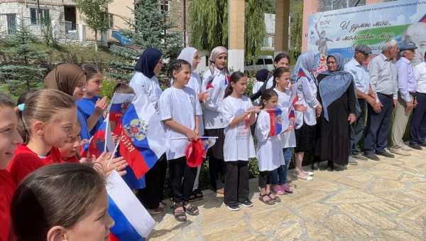 Сегодня во дворе Дома культуры в селе Цуриб прошло праздничное мероприятие ко Дню Государственного флага РФ.