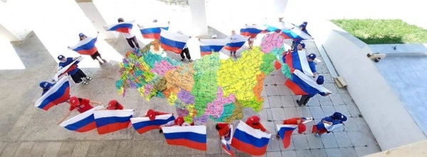 Также участники образовали большой триколор в форме карты страны «Живая карта».