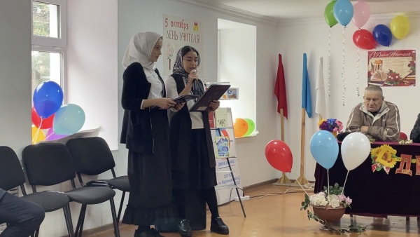 В адрес каждого учителя прозвучали слова признательности от присутствовавших учащихся. Воспитанники центра дополнительного образования исполнили красивый национальный танец, учащиеся 5-го класса прочитали стихи с пожеланиями радости и добра учителям. В конце мероприятия был объявлен общий танец лезгинка.