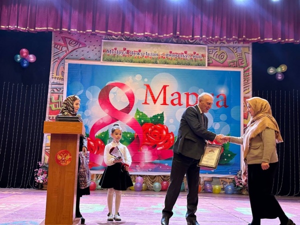 С поздравительной речью к собравшимся в зале женщинам обратился заместитель главы района Магомед Омаров, который отметил важную роль, которую женщина играет не только в семье, но и во всех сферах деятельности.