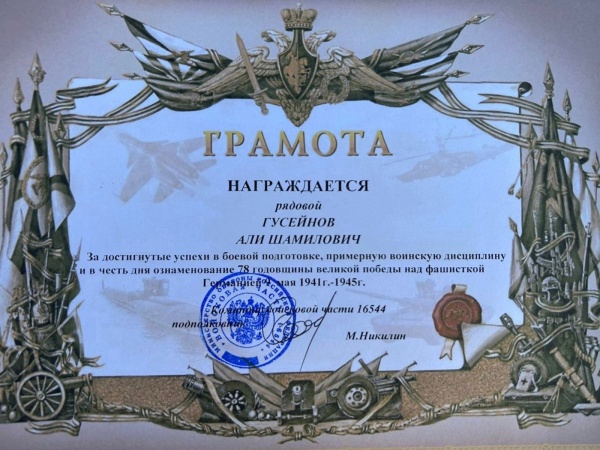 Гусейнов ранее был награжден орденом «Святого Георгия —Георгиевским крестом 4-ой степени». А недавно удостоился медали «За отвагу».