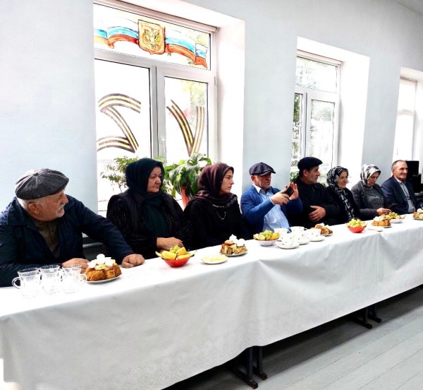 После под свадебный марш за специально накрытый праздничный стол пригласили 7 юбилейных семейных пар (Сиражудиновы — 40 лет совместной жизни, Магомедовы — 35 лет, Мирзаевы — 30 лет, Магомедовы — 25 лет, Мустафаевы — 20 лет, Магомедовы — 15 лет и Ахматиловы — 10 лет).