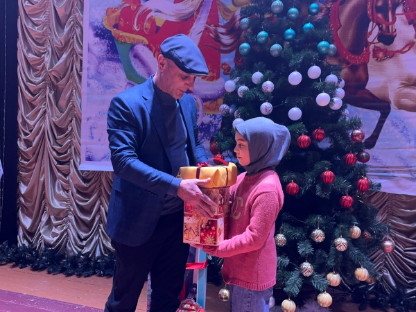 В зале районного Дома культуры состоялась торжественная церемония вручения подарков у празднично нарядной ёлки.
