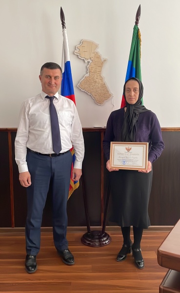 Также в рамках встречи отдельным работникам образования были вручены ведомственные награды. Так, нагрудной знак «Почетный работник воспитания и просвещения РФ» получила учительница Гочобской средней школы Супият Исрапилова, почетные грамоты министерства просвещения РФ дали тренеру-преподавателю, директору ДЮСШ Расулу Ахматилову и педагогу дополнительного образования, директору ЦДОД Шуайнат Магомедовой. Благодарность министерства просвещения РФ объявили учителю Тлярошской средней школы Омару Муртазалиеву и учителю Цулдинской ООШ Пати Омаровой.