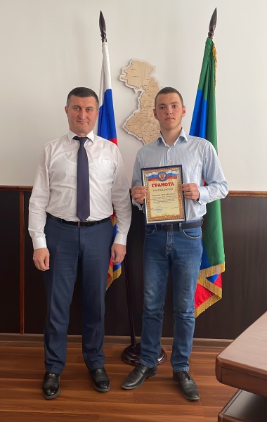 Мухидин Магомедов вручил Арсену Рамазанову грамоту и денежный подарок за отличную учебу и достигнутые результаты.