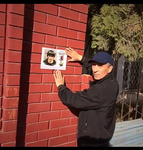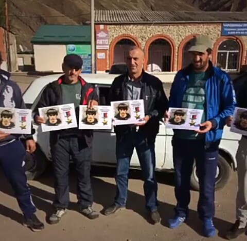 Завершилась акция раздачей листовок с изображением Героя Магомеда Нурбагандова с призывом "Работайте, братья!"