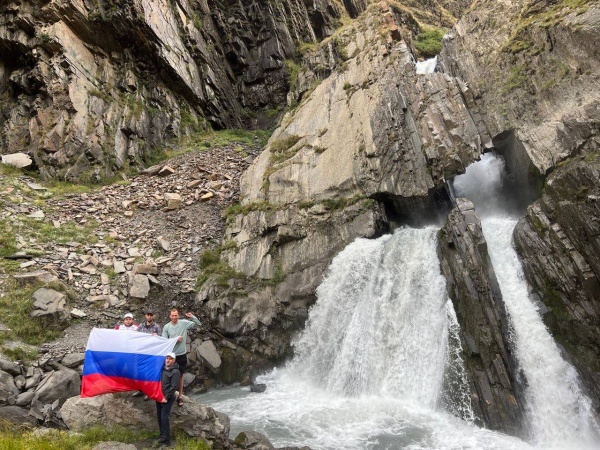 В преддверии Дня Государственного флага России специалисты администрации района развернули Российский триколор около самого высокого в Чародинском районе и самого мощного в Дагестане водопада Чирхалю.