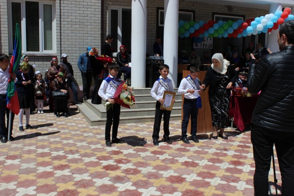 Торжество в честь последнего звонка открыла и провела учитель родного языка Аминат Магомедова. Она представила гостей праздника и пригласила выпускников.