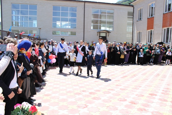 В завершении праздника для выпускников прозвучал последний звонок. Под аплодисменты стоявших в линейке колокольчик пронесли отличники учебы 11 класса Муслим Муслимов, Султан Муртазалиев и Мадина Абдулазизова вместе с первоклассниками Патимат Мурадовой и Магомедали Магомедовым.