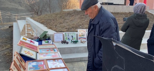 На площадке перед памятником была организована выставка на тему «Вы герои в наших сердцах», на котором были представлены фотографии наших земляков, погибших в ходе СВО на Украине и рисунки воспитанников центра дополнительного образования детей, через которые дети старались выразить свою благодарность нашим землякам и уважение Дню Героев Отечества.