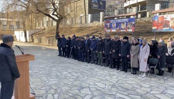 К 10 часам у памятника, погибшим за Родину, собрались заместитель главы района Магомед Арабиев, военный комиссар Магомед Магомедов, начальники отделов администрации и руководители учреждений района, участники СВО на Украине, представители общественных организаций и жители района.