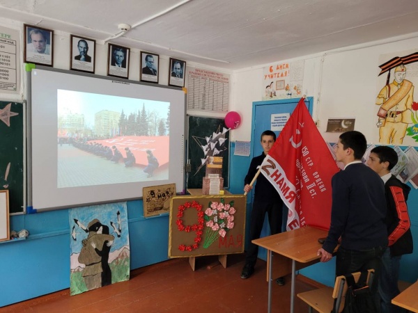 Ребята читали стихи, пели патриотические песни. Учителя рассказывали им великую историю нашего народа, бесстрашный подвиг участников ВОВ, а также про Красное знамя.