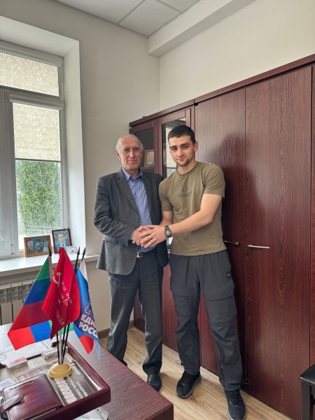Сегодня в райадминистрации прошла встреча с военнослужащим Магомедгаджи Ширвановым, который приехал на короткий отпуск из зоны СВО.