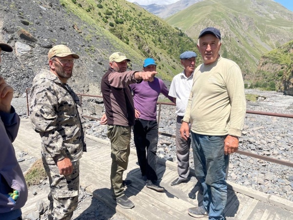 С помощью техники, которую предоставил житель села Ириб Шахбан Шахбанов, первый этап работ – восстановление прохода для пешеходов завершен. Они соорудили для них временный пешеходный мост через вновь образовавшееся русло.