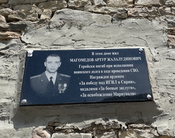 Вчера в селе Шалиб открыли мемориальную доску Артуру Жалалудиновичу Магомедову, который погиб при исполнении воинского долга 3 марта 2023 г. в Ясиноватском районе Донецкой области.