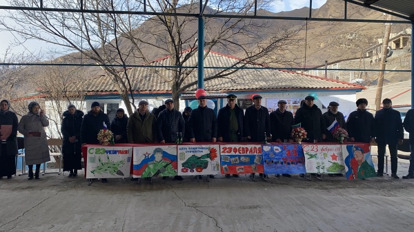 После открытия торжественной линейки в честь Дня защитников Отечества, директор школы Гасан Хизрибегов отметил важную часть мероприятия.