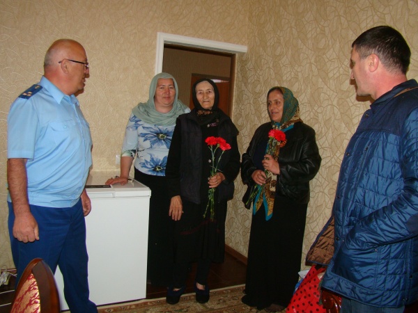 С 7 по 9 мая Глава Чародинского района Мухидин Магомедов, его заместитель Рустам Магомедов, прокурор района Запир Магомедов совместно с председателем Совета женщин Айшат Ибрагимовой, директором ЦСОН Асият Магомедовой и ее работниками посетили вдов участников Великой Отечественной войны на дому.