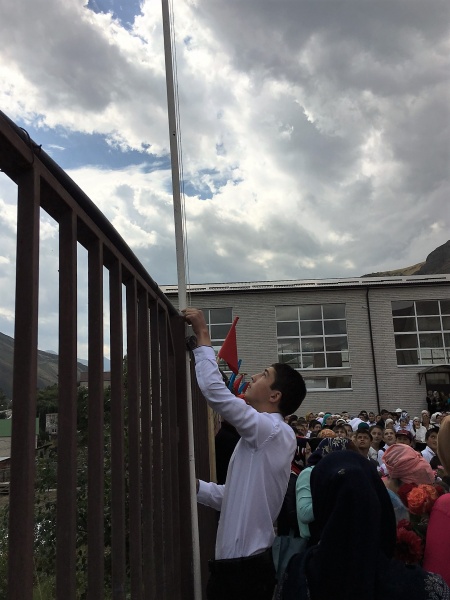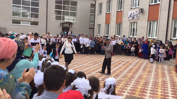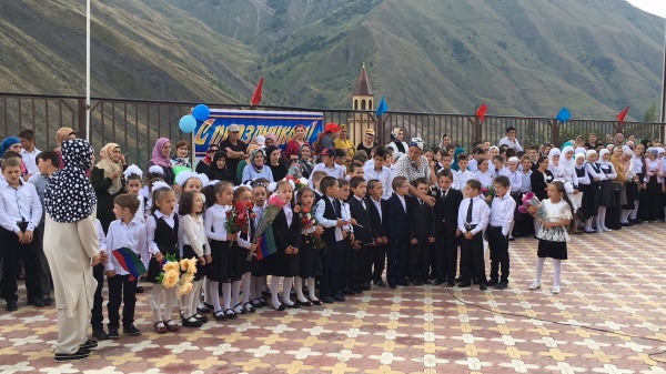 В этот день самая большая школа района в с.Цуриб выглядела особенно торжественно и празднично. К десяти часам нарядные дети, их родители, учителя и приглашенные на праздник Дня знаний собрались в школьном дворе, который был к их приходу заранее красиво украшен плакатами с поздравлениями, разноцветными флагами и цветами.