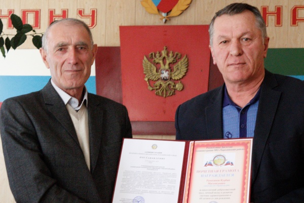 Далее на совещании была отмечена положительная работа главного врача района Курбана Рамазанова. Ему вручили почетную грамоту администрации района за многолетний добросовестный труд, личный вклад в развитие системы здравоохранения и в связи с 60-летием со дня рождения.