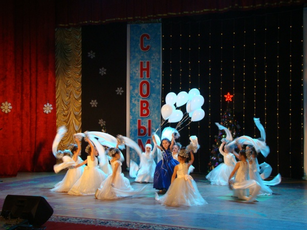 Концертный зал был украшен яркими гирляндами, мишурой и шарами, а на сцене сверкали красиво наряженные елки. Все вокруг было пропитано духом предстоящего Нового года.