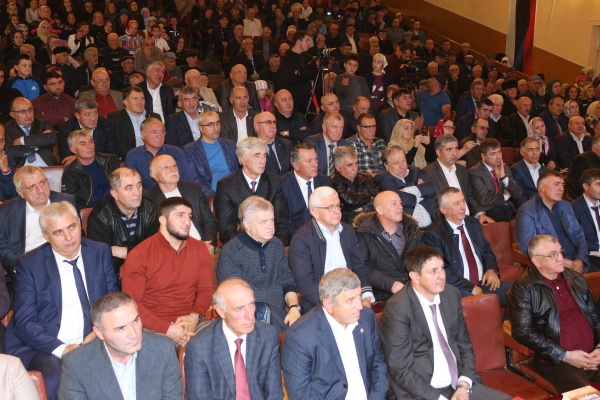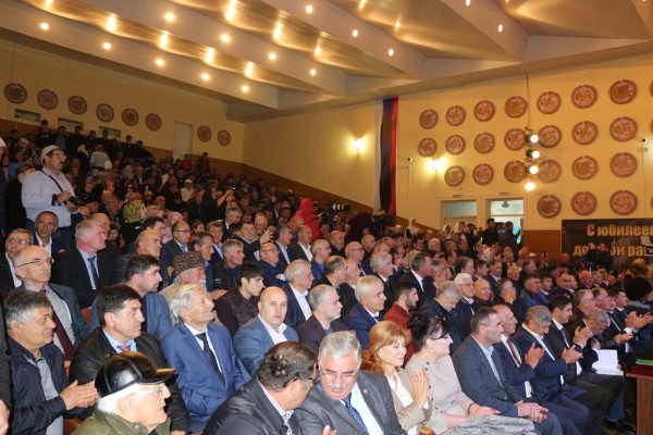 Глава района Мухидин Магомедов поприветствовал гостей района и зачитал доклад с подробным описанием развития района за последние 90 лет.