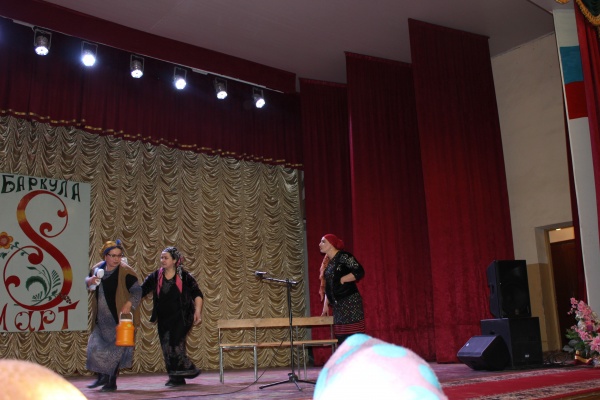 Перед собравшимися в зале с красивой танцевальной композицией выступили воспитанники детского сада селения Цуриб, хорошие песни, посвященные матерям и женщинам спели певцы дома культуры райцентра. Массу положительных эмоций вызвала театральная сценка, где очередную главную роль сыграла заслуженная артистка РД Жавгарат Гасангусейнова. Вместе с тем зрители остались довольны увиденными национальными танцами, исполненные ансамблем «Кара-Койсу» и номерами ансамбля «Салам».