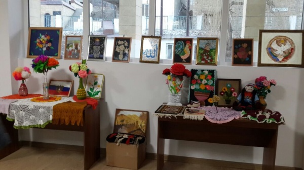 Также в фойе гостям вечера была предложена интересная выставка декоративно-прикладного искусства, на которой представлены работы детей обучающихся в центре дополнительного образования района.