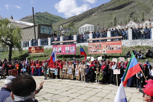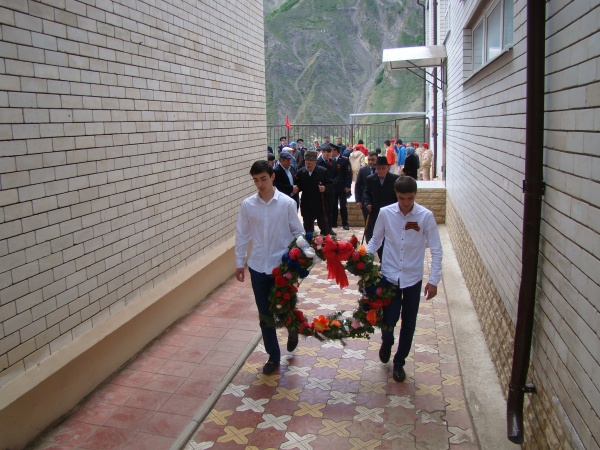 Затем участники праздничных мероприятий направились на территорию возле памятника воинам, погибших на войне, расположенного около Дома культуры Цуриба, где провели основную торжественную часть праздника, которая началась с минуты молчания в память о погибших в годы ВОВ.