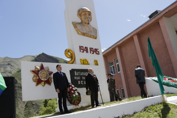 Затем глава района Мухидин Магомедов и ветеран венгерских событий Ахмед Саидов возложили венок к подножию памятника воинам, погибших в ВОВ.