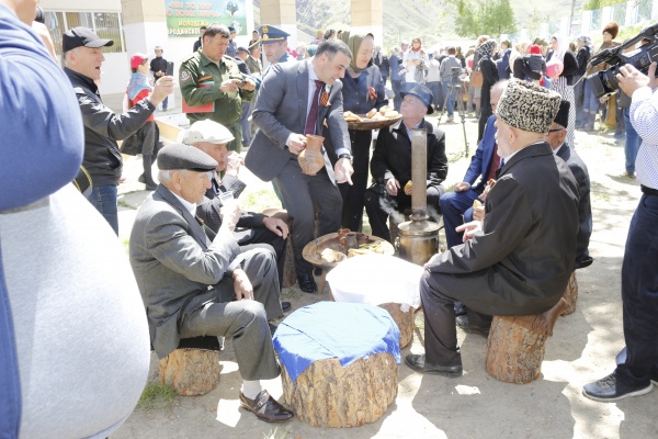 С поздравительной речью и с разными рассказами о войне, о тружениках тыла выступили военный комиссар района Магомед Магомедов, участник венгерских событий Ахмед Саидов, член Совета старейшин Мухучи Гарумов и другие.
