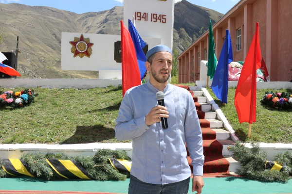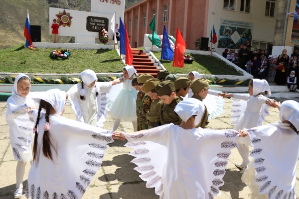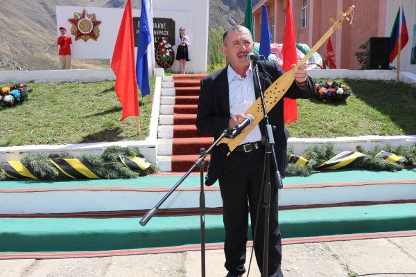 Затем участники праздничных мероприятий направились на территорию возле памятника воинам, погибших на войне, расположенного около Дома культуры Цуриба, где провели основную торжественную часть праздника, которая началась с минуты молчания в память о погибших в годы ВОВ.