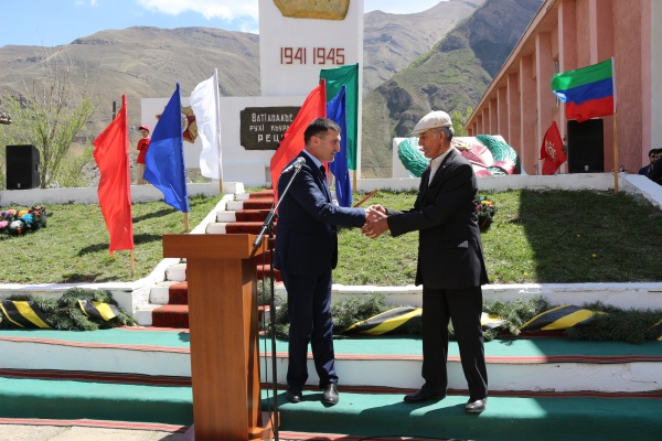 К собравшимся обратился глава района Мухидин Магомедов. В своем выступлении он поздравил ветеранов войны, вдов ветеранов, тружеников тыла, жителей и гостей района с этим значимым праздником Победы.