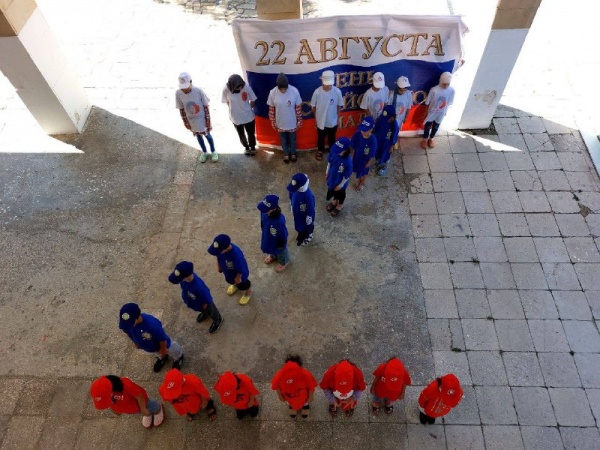 Также участники образовали большой триколор в форме карты страны «Живая карта».