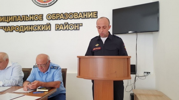 По вопросу «О состоянии преступности в районе и принимаемых мерах по их предупреждению» выступил старший инспектор штаба ОМВД РФ по Чародинскому району Камиль Курбанов.