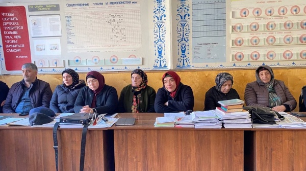 Заместитель главы района Магомед Омаров, управляющая делами райадминистрации Шамай Абакарова и участковый Омар Увайсов выступили перед местными жителями.