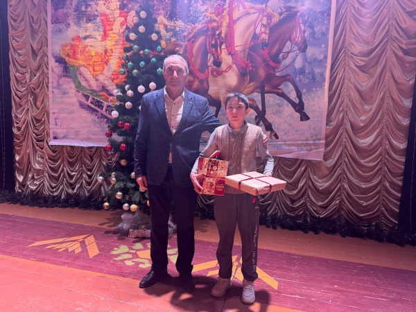 В зале районного Дома культуры состоялась торжественная церемония вручения подарков у празднично нарядной ёлки.