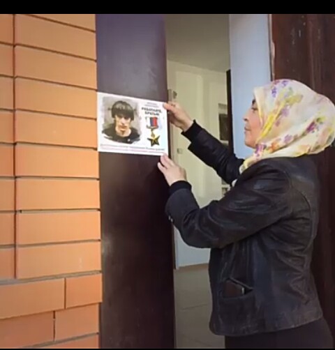 Завершилась акция раздачей листовок с изображением Героя Магомеда Нурбагандова с призывом "Работайте, братья!"