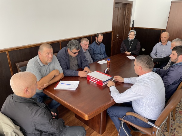 Накануне в поддержку специальной военной операции на Украине глава района Мухидин Магомедов в своем кабинете провел совещание с участием военного комиссара района Магомеда Магомедова и глав сельских поселений.