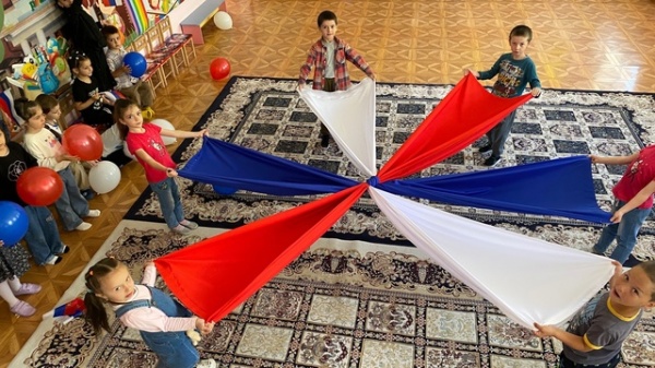 Руководитель районного методобъединения Джульетта Адухова ознакомила детишек с историей праздника и подчеркнула важность этого государственного символа.