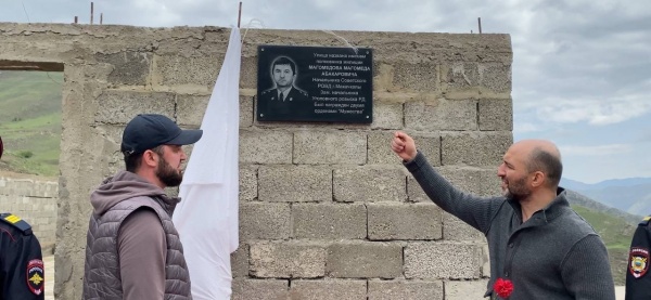 Сыновья полковника полиции Рашид и Абдула Магомедовы, спустив полотно, открыли памятную доску, которую установили на стене их дома. Затем собравшиеся почтили память Магомеда Магомедова возложением живых гвоздик к его мемориалу.