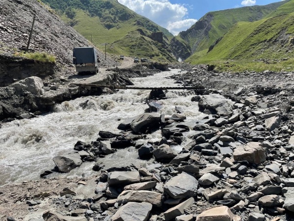 С помощью техники, которую предоставил житель села Ириб Шахбан Шахбанов, первый этап работ – восстановление прохода для пешеходов завершен. Они соорудили для них временный пешеходный мост через вновь образовавшееся русло.