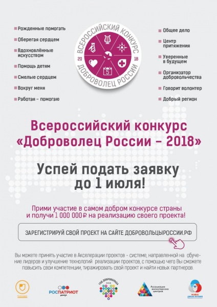 Организаторы конкурса «Доброволец России» — Федеральное агентство по делам молодежи, Роспатриотцентр, Росдетцентр и Ассоциация волонтерских центров.